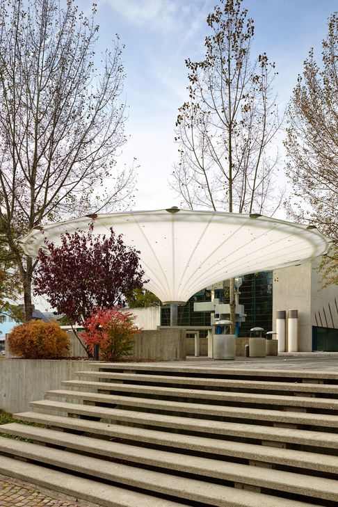 Das Projekt ergänzt die Campusanlage um einen zweigeschossigen Erweiterungsbau, der über ein Geschoss mit dem Hauptgebäude verbunden ist. Das neue Schulhaus ist direkt an die von West nach Ost verlaufende Haupterschliessungsachse der Anlage angebunden und setzt einen neuen Schwerpunkt zur Tellistrasse. Die Mensa bleibt am bestehenden Ort erhalten, erfährt aber durch das Verbindungsgeschoss eine Vergrösserung und orientiert sich mit ihrem Aussenraum nun sowohl zum Telliring wie auch zum neu definierten Osthof.