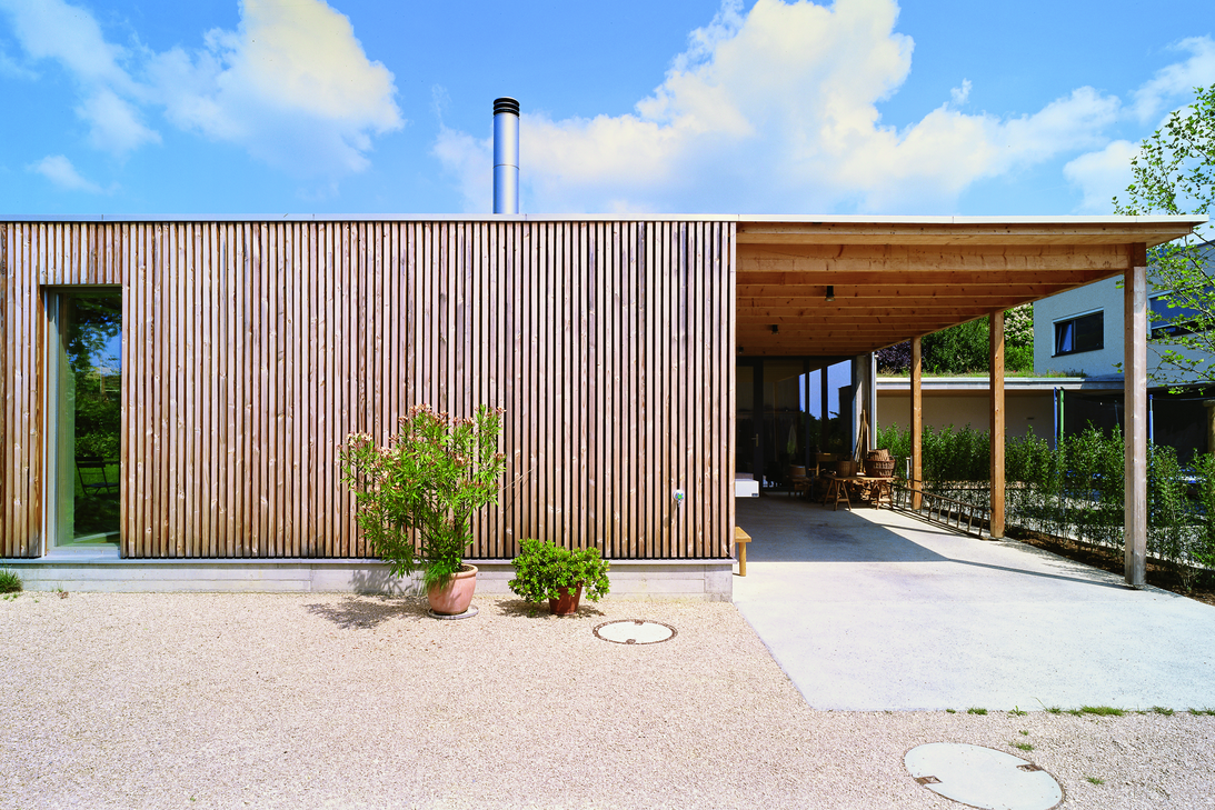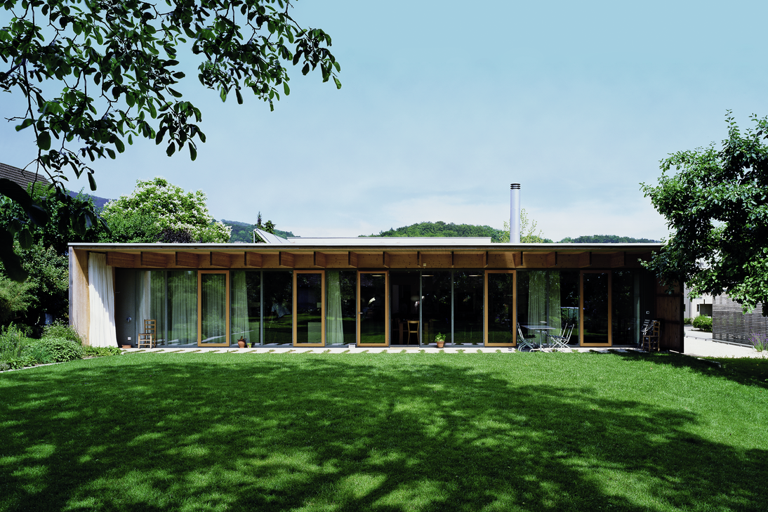Raumprogramm sowie Detailausführung sind seniorengerecht und rollstuhlgängig. Die vorfabrizierte Holzkonstruktion ermöglichte eine Bauzeit von lediglich drei Monaten ab Fundation und entspricht den Anforderungen von Minergie P. Die Energieversorgung, flankiert von einer Komfortlüftung, übernimmt eine erdwärmegespiesene Wärmepumpe, unterstützt von einer Solaranlage für Warmwasser.